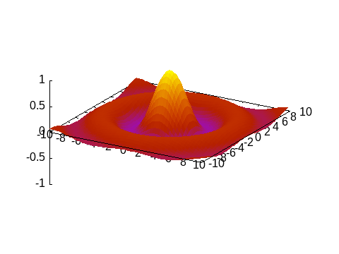 sinc2d(x,y) = sin.(sqrt.(x.^2 + y.^2))./sqrt.(x.^2+y.^2)