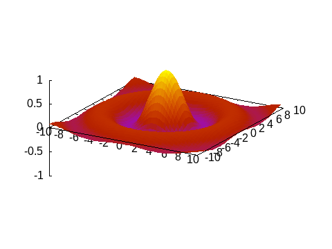 sinc2d(x,y) = sin.(sqrt.(x.^2 + y.^2))./sqrt.(x.^2+y.^2)