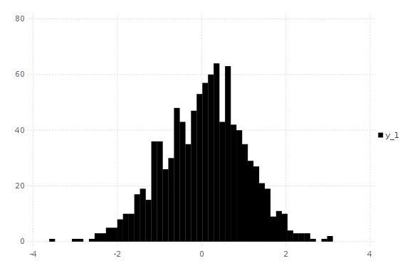 histogram(randn(1000); nbins=50,fillto=20)