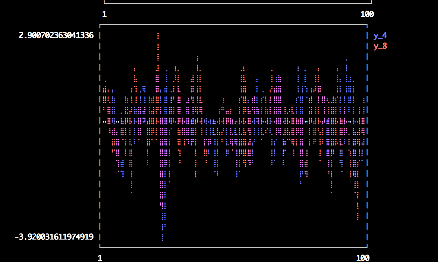 plot(Vector[randn(100),randn(100) * 100]; axiss=[:left,:right])