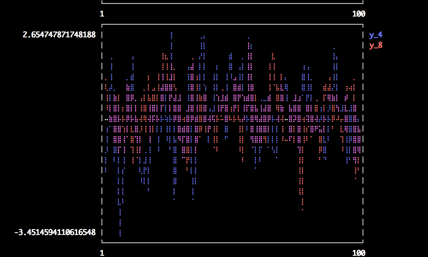 plot(Vector[randn(100),randn(100) * 100]; axiss=[:left,:right])