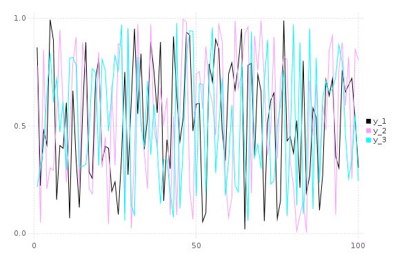 plot(rand(20,4); linetypes=[:line,:step,:sticks,:dots])