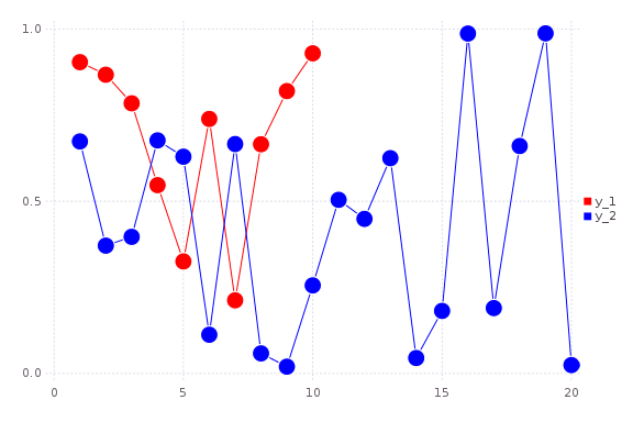 plot(Vector[rand(10),rand(20)]; marker=:ellipse,markersize=8,colors=[:red,:blue])