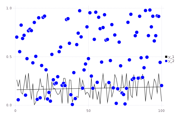 Note: Gadfly is not very friendly here, and although you can create a plot and save a PNG, I haven't been able to actually display it.