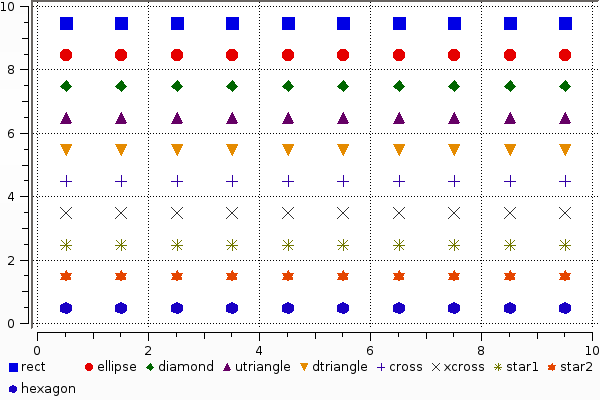 • Supported values for marker: :none, :auto, :rect, :ellipse, :diamond, :utriangle, :dtriangle, :cross, :xcross, :star1, :star2, :hexagon