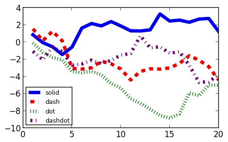 plot(cumsum(randn(20,length(styles)),1),style=:auto,label=map(string,styles),w=5)