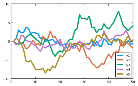 plot(Plots.fakedata(50,5),w=3)