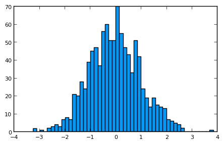 histogram(randn(1000),nbins=50)