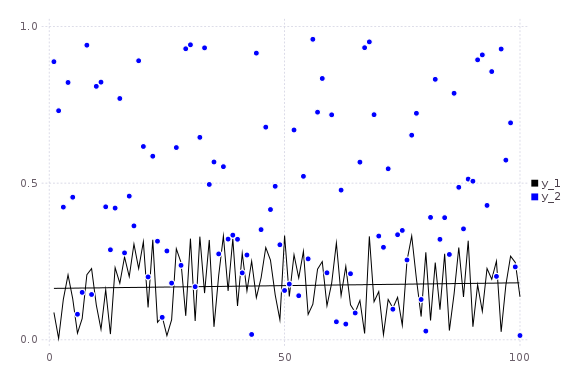 Note: Gadfly is not very friendly here, and although you can create a plot and save a PNG, I haven't been able to actually display it.