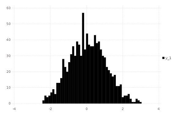 histogram(randn(1000); nbins=50,fillto=20)