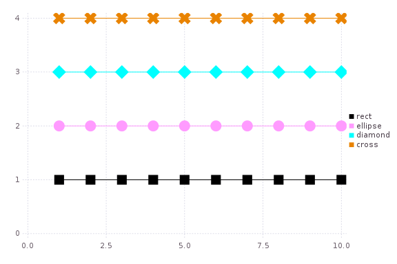 All options: (:none, :auto, :ellipse, :rect, :diamond, :utriangle, :dtriangle, :cross, :xcross, :star1, :star2, :hexagon)