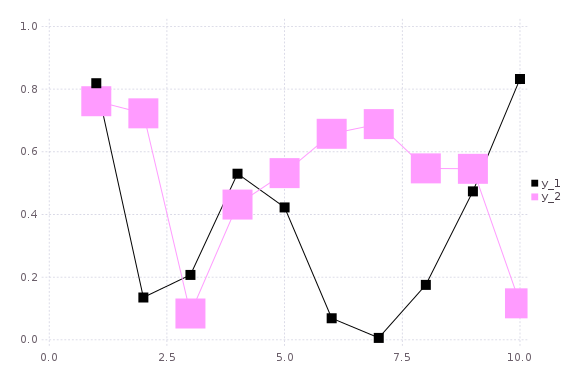 plot(rand(10,2); marker = :rect, markersizes=[10,30])