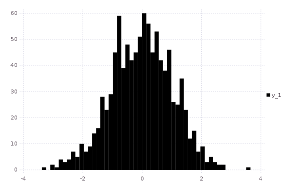 histogram(randn(1000); nbins=50,fillto=20)