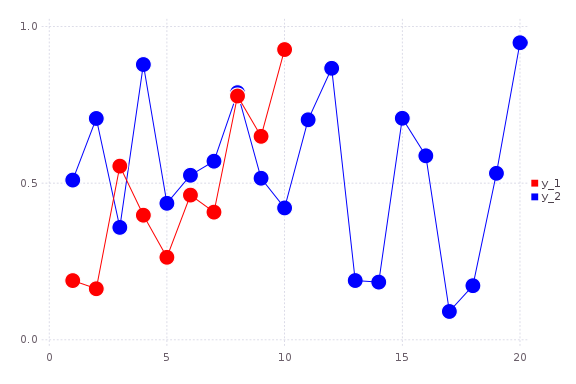 plot(Vector[rand(10),rand(20)]; marker=:ellipse,markersize=8,colors=[:red,:blue])