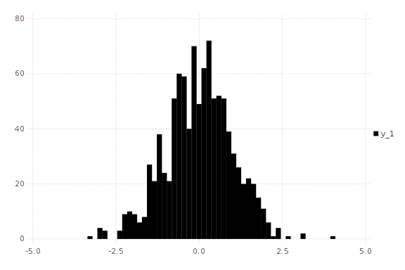 histogram(randn(1000); nbins=50,fillto=20)