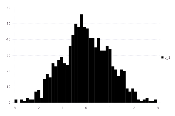 histogram(randn(1000); nbins=50,fillto=20)