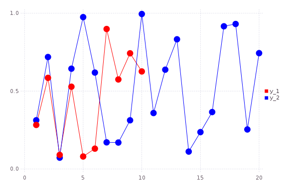plot(Vector[rand(10),rand(20)]; marker=:ellipse,markersize=8,colors=[:red,:blue])