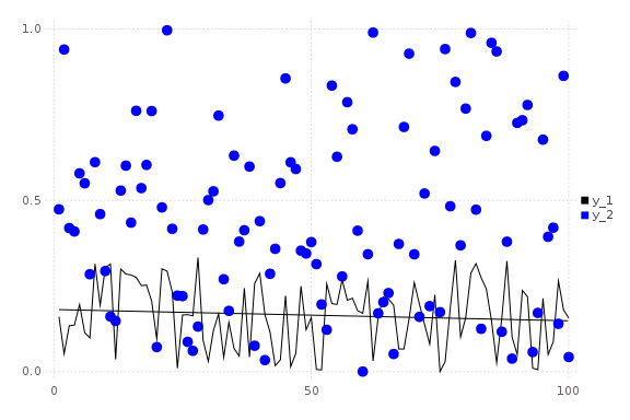 scatter!(rand(100); markersize=6,color=:blue)
