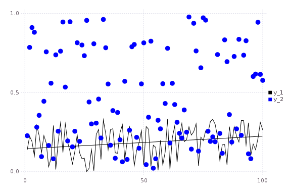 scatter!(rand(100); markersize=6,color=:blue)