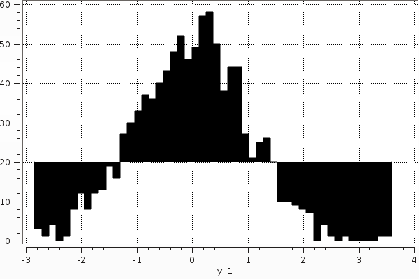 histogram(randn(1000); nbins=50,fillto=20)