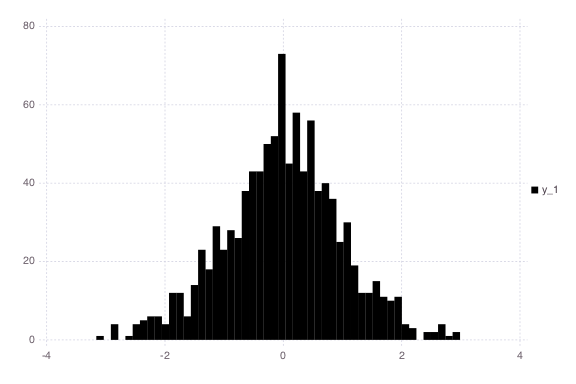 subplot(randn(100,5); layout=[1,1,3],linetypes=[:line,:hist,:dots,:step,:bar],nbins=10,legend=false)