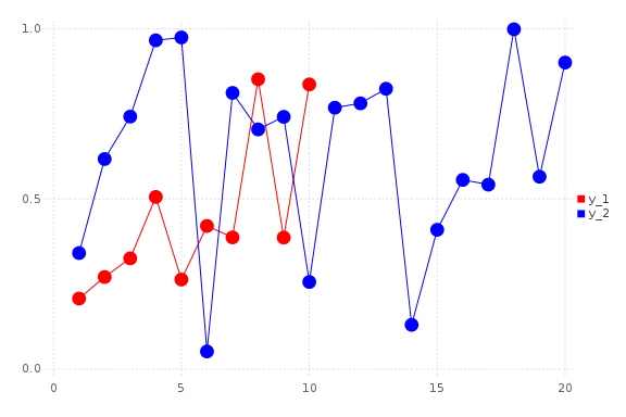 plot(Vector[rand(10),rand(20)]; marker=:ellipse,markersize=8,colors=[:red,:blue])