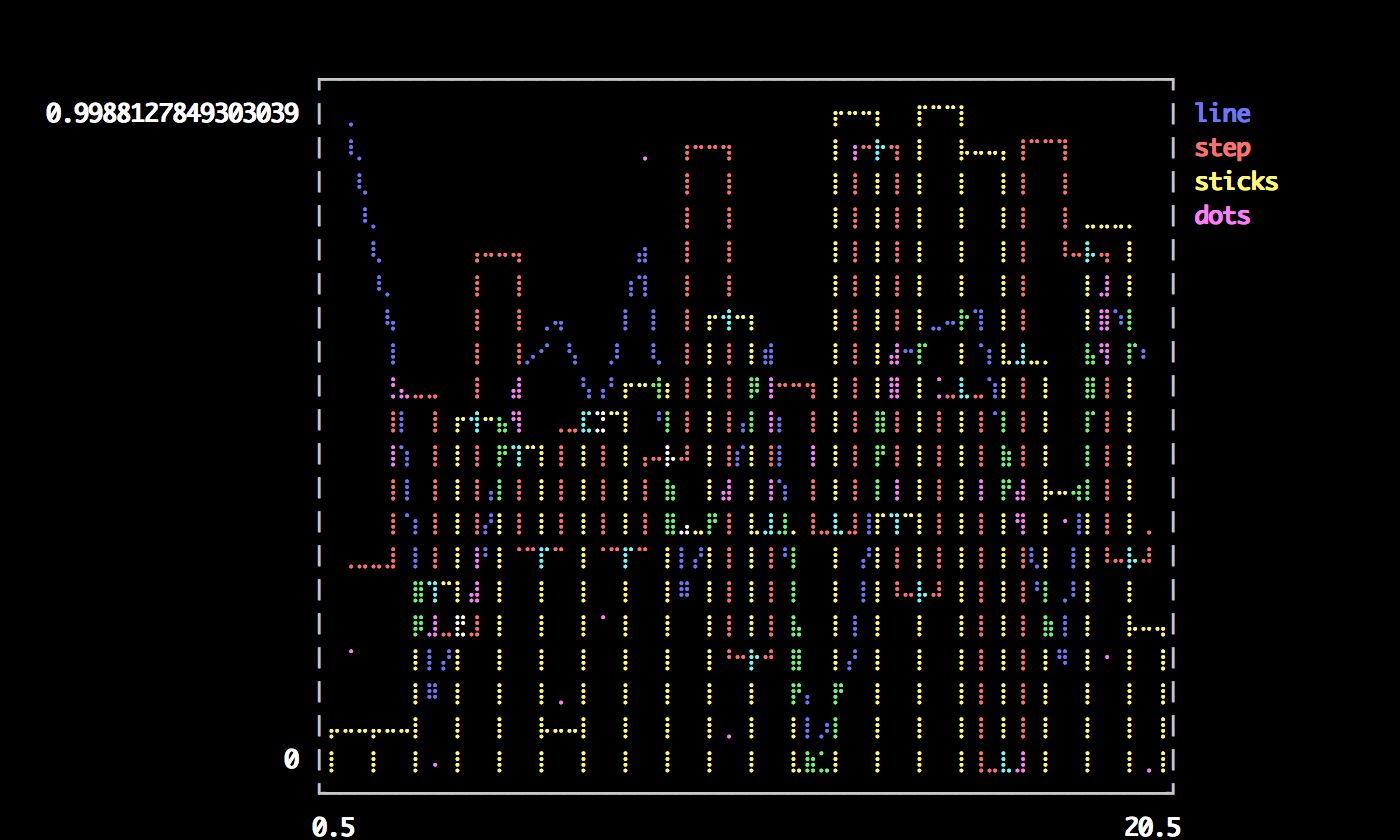 All options: (:line, :orderedline, :step, :stepinverted, :sticks, :scatter, :none, :heatmap, :hexbin, :hist, :bar)