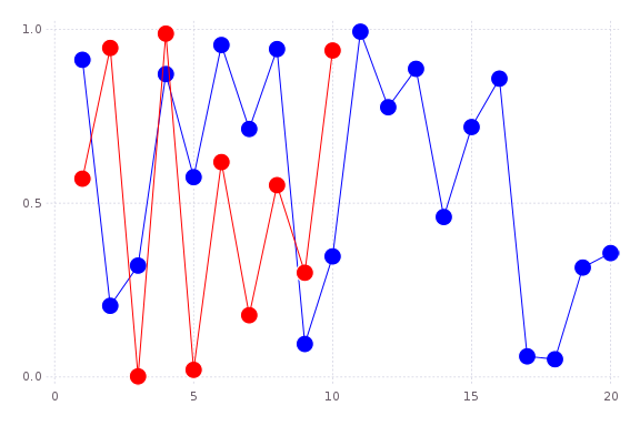 plot(Vector[rand(10),rand(20)]; marker=:ellipse,markersize=8,colors=[:red,:blue])